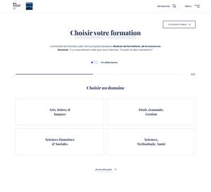 Le catalogue de formations de l’Université de Picardie Jules Verne (UPJV) a été optimisé grâce à un système de tunnel, visant à simplifier l'accès aux informations pour les futurs étudiants. Ce système facilite la recherche en affinant les critères selon les intérêts académiques et professionnels des futurs étudiants. Les utilisateurs peuvent explorer les programmes disponibles, découvrir des détails sur chaque formation, et accéder directement aux informations.